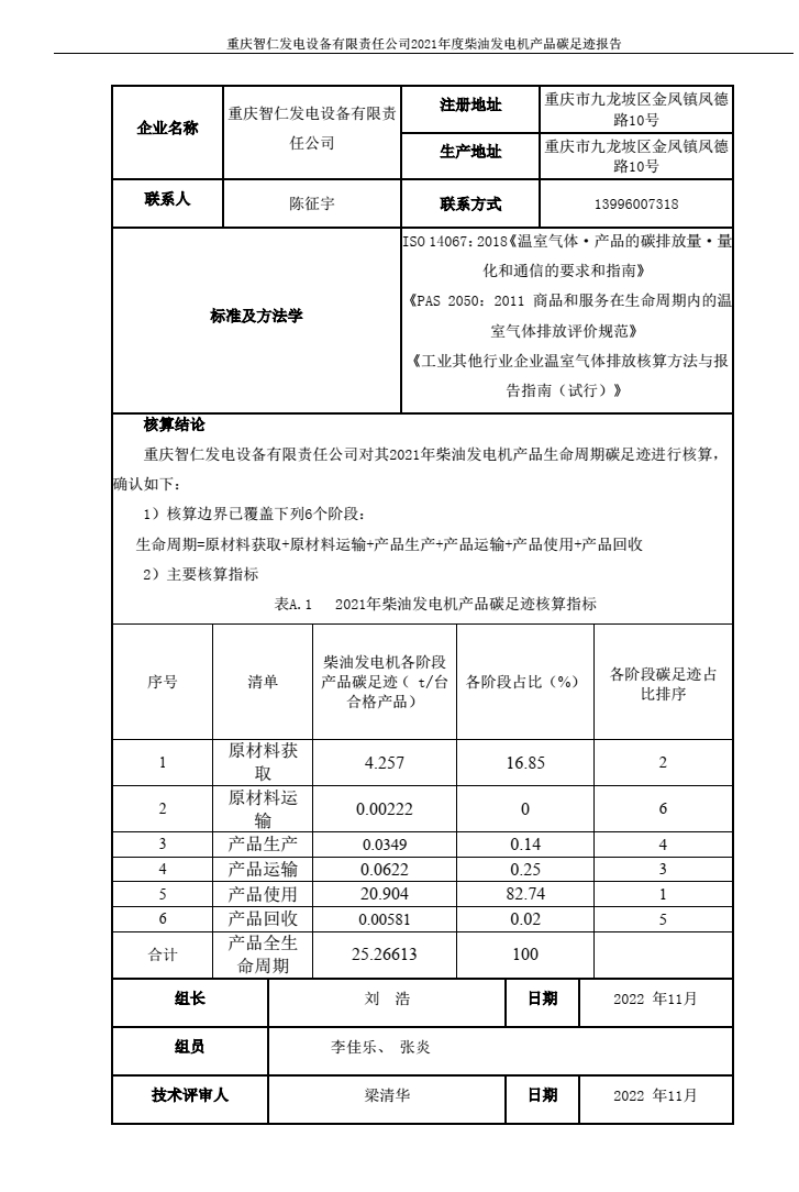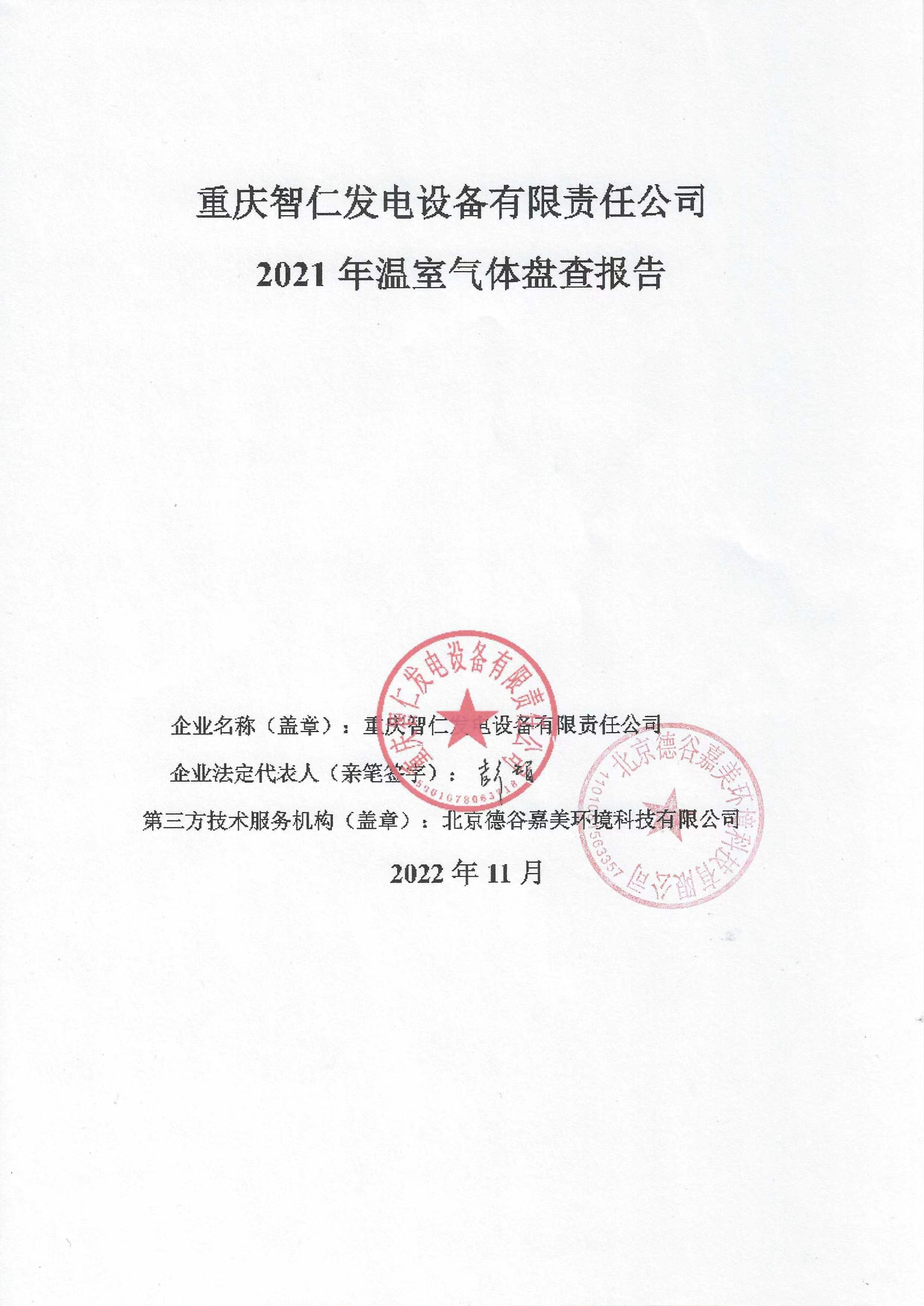 重庆智仁发电设备有限责任公司2021年碳排放信息披露