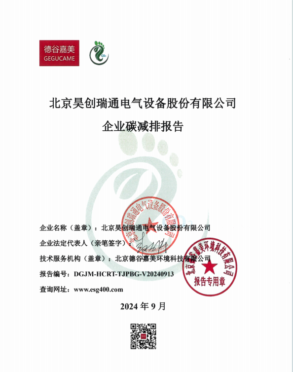 2023年北京昊创瑞通电气设备股份有限公司碳减排报告公示